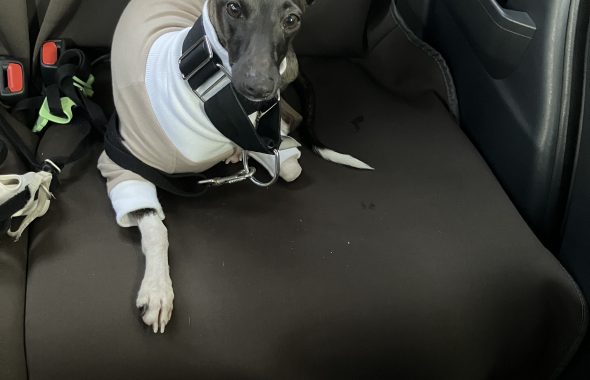 福岡市から大分市へ。ペットタクシーにマルプーさんご乗車