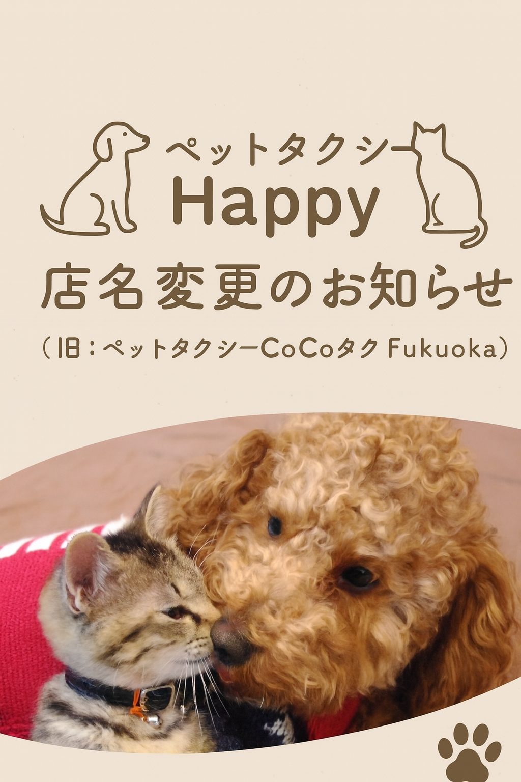 【店名変更のお知らせ】ペットタクシーCoCoタクFukuokaは「ペットタクシーHappy」になりました|福岡の犬猫ペット送迎専門