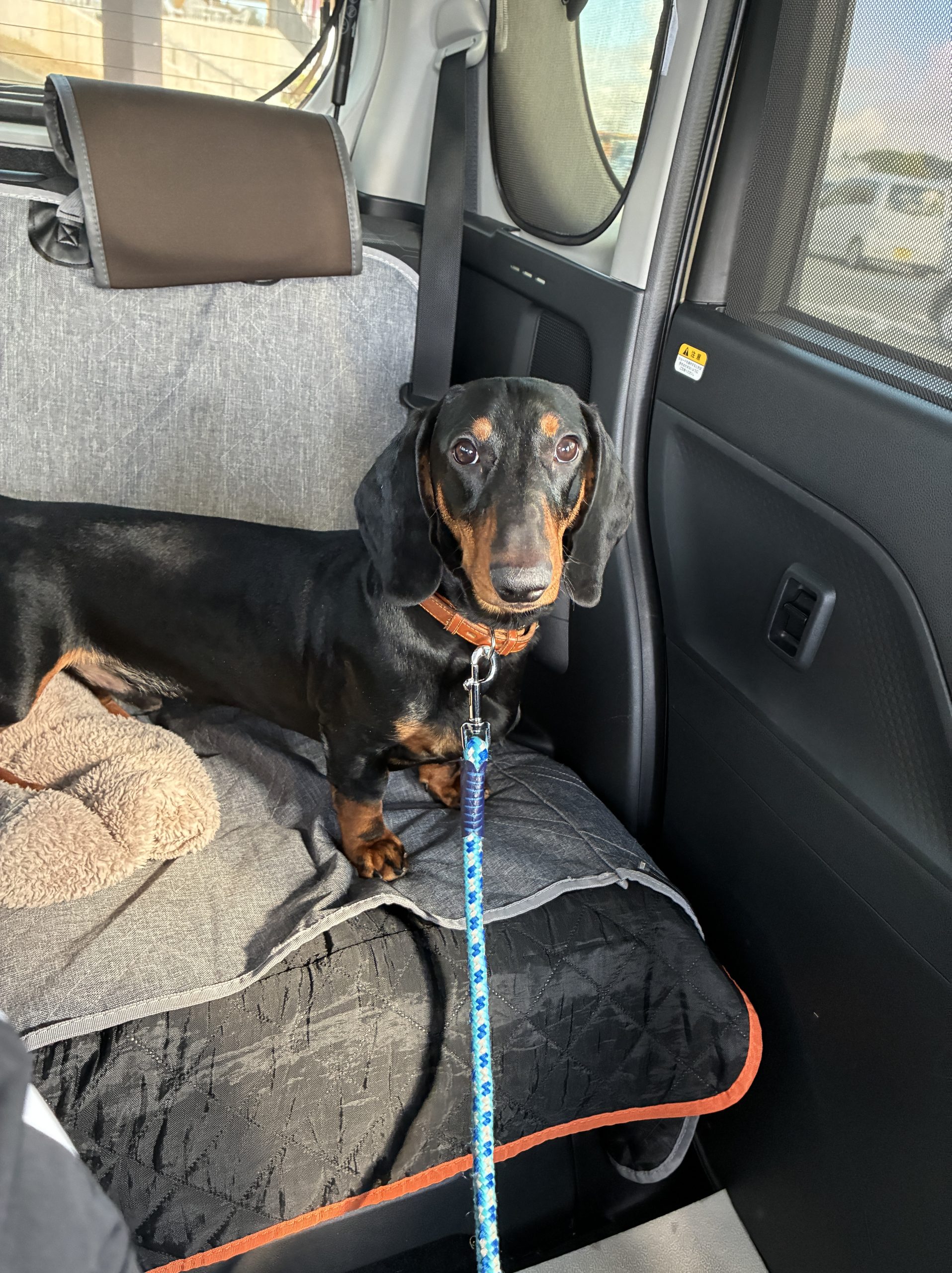素晴らしいコンディションのダックスちゃんを乗せて、いざ大阪のご自宅へ。