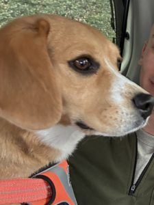 プライベートジェットをご利用で到着される、飼い主様とビーグルさんのお迎えにあがりました。