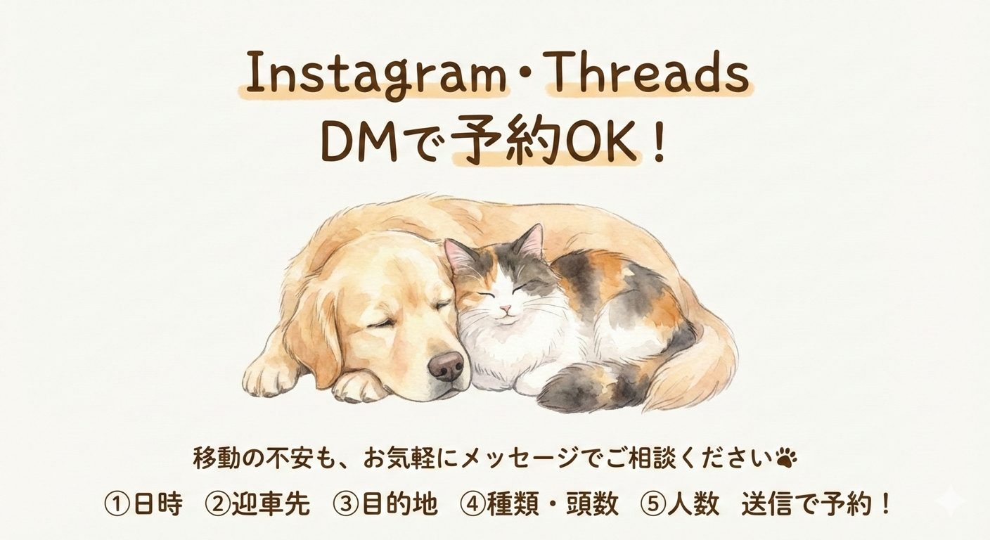 ペットタクシーHappyがInstagram・ThreadsでのDM予約も開始!ペットの引越し・長距離移動の相談も受付中
