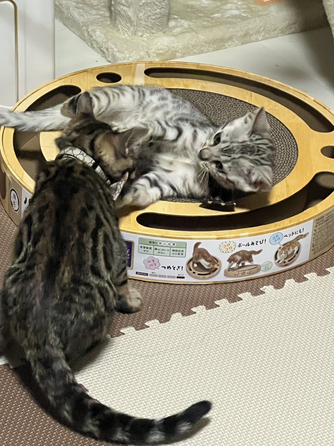 「ご飯が欲しい」「ドアを開けて」「遊んで」など、何かをしてほしい時の要求鳴きです。