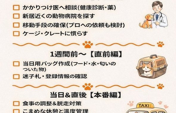【保存版】ペットの引っ越しチェックリスト!犬・猫との長距離移動を成功させる準備ガイド|ペ...